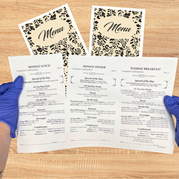 - Add flair to your Menu presentation with these Flourish Menus, a part of MedFare's Flourish Coordinated Tray Top Program.