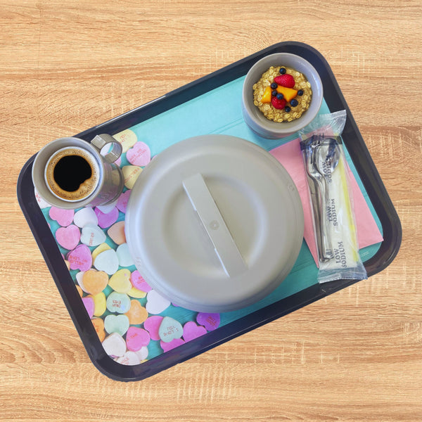 - Help celebrate Valentine's Day with these candy heart 14" x 19" Traycovers.