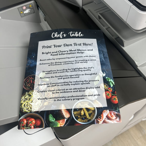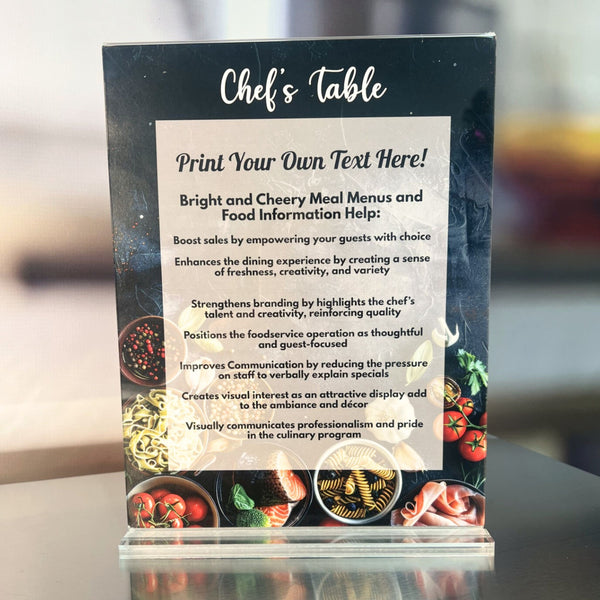 8-1/2" x 11" Chef's Table Shells designed to print your daily specials for display in your Dining areas.