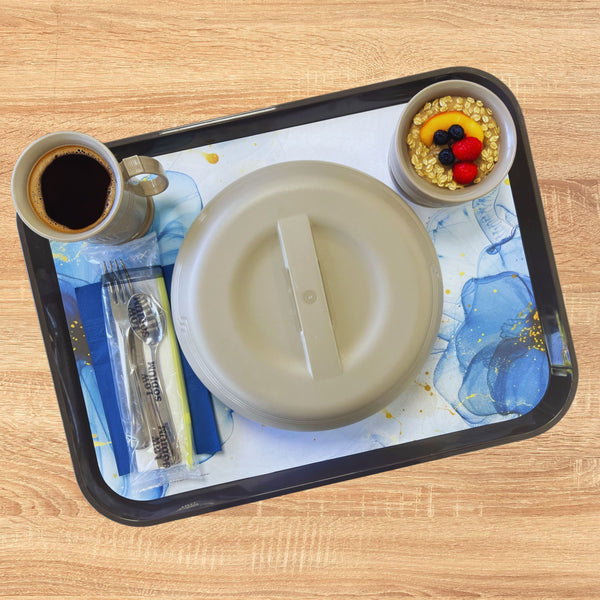 - The calming aesthetic of our Topaz Melody traycovers is a great way to soothe your patients at mealtime.